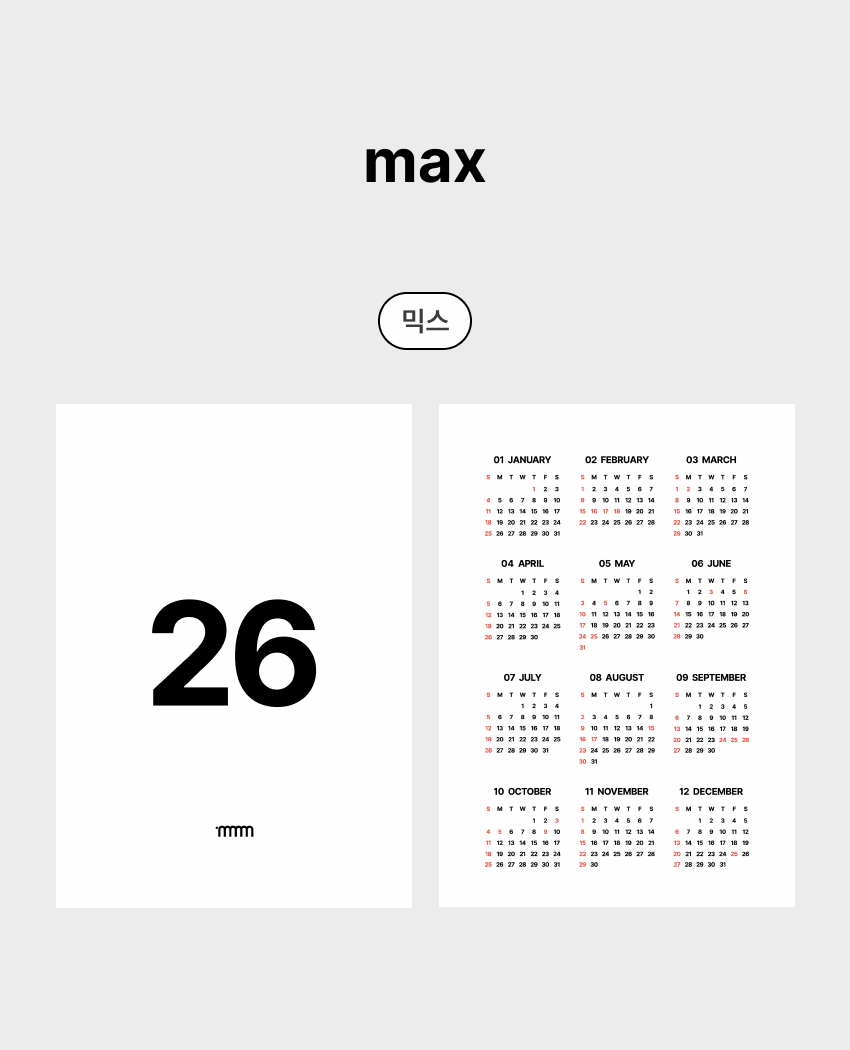 NAME : 2026 MMM Max Wall Calendar